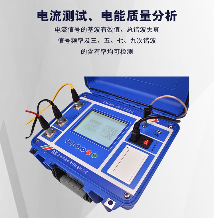 使用儀器鉗形電流互感器可單獨用于電流檢測,可檢測電流信號的基波有效值、總諧波失真、信號頻率及三、五、七、九次諧波的含有率,從而對電流信號進行簡單的電能質(zhì)量分析。