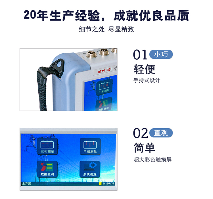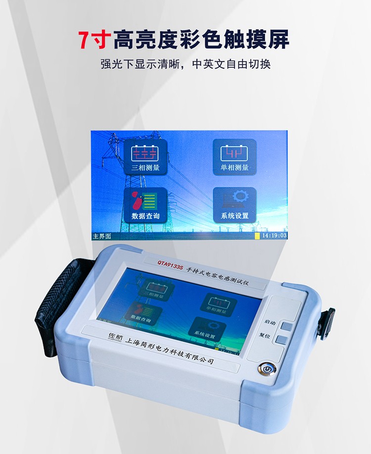 七寸高亮度觸摸彩色液晶,強光下顯示清晰,全觸屏操作,中英文自由切換