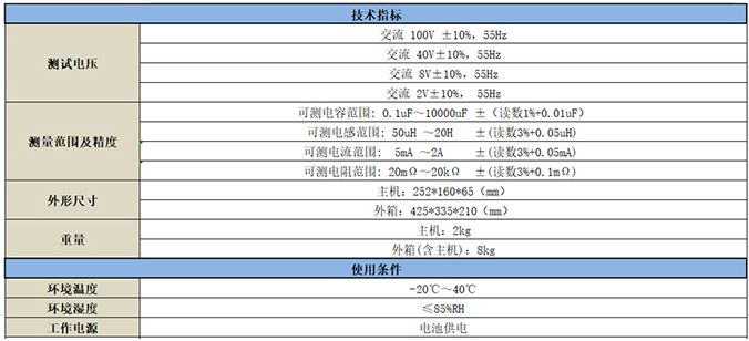 測量時本儀器顯示測量電容值或電感值的同時還可以顯示測量的電壓、電流、功率、頻率、阻抗、相位角等數據;