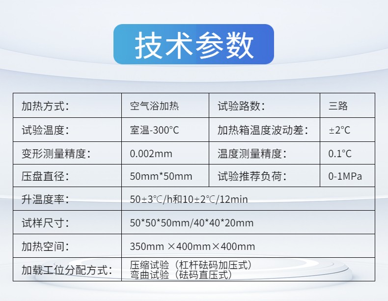 主要用于測(cè)試硬質(zhì)泡沫在溫度和負(fù)荷條件下的壓縮蠕變性能
