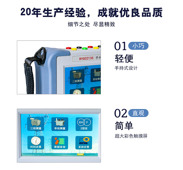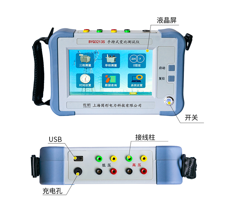 在電力變壓器的半成品、成品生產(chǎn)過程中,新安裝的變壓器投入運(yùn)行之前及根據(jù)國家電力部的預(yù)防性試驗(yàn)規(guī)程,要求對運(yùn)行的變壓器進(jìn)行匝數(shù)比或電壓比測試,可以檢查變壓器匝數(shù)比的正確性、分接開關(guān)的狀況、變壓器是否匝間短路、變壓器是否可以并列運(yùn)行。傳統(tǒng)的變比電橋讀數(shù)不直觀,要進(jìn)行換算,只能逐相進(jìn)行測量。佐航BYQ3213S手持變壓器變比測試儀克服了傳統(tǒng)變比電橋測試的缺點(diǎn),操作簡便直觀,采用三相精密逆變電源,測試快,準(zhǔn)確度高。