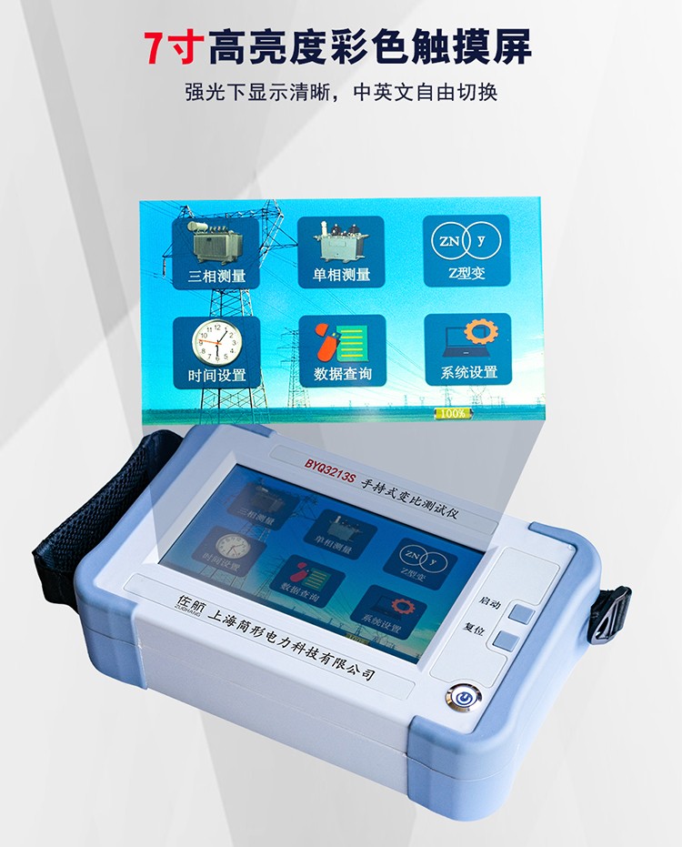6、 七寸高亮度觸摸彩色液晶,強(qiáng)光下顯示清晰,全觸屏操作,中英文自由切換
