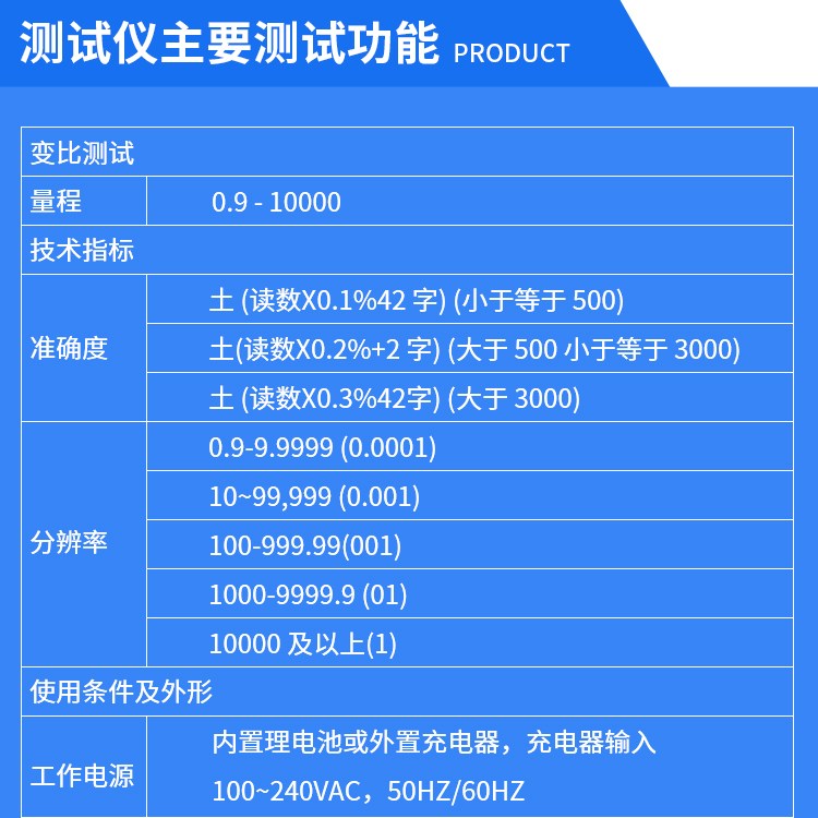 >變比測試范圍: 0.8~10000