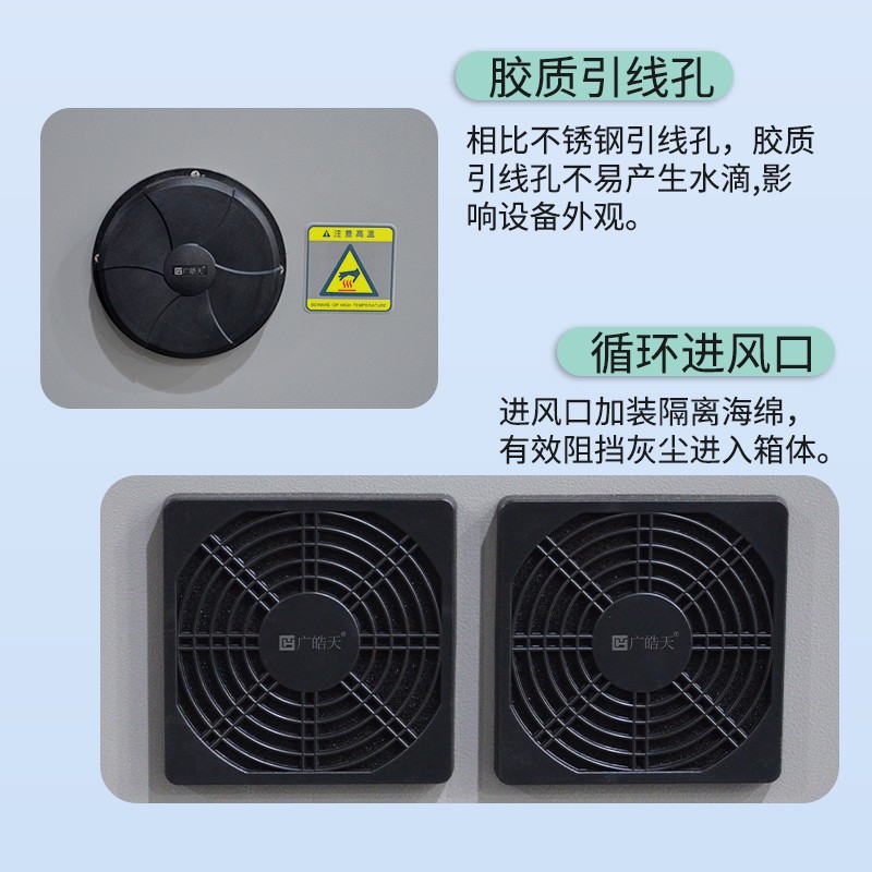 結(jié)構(gòu):采用模塊化設(shè)計,箱體內(nèi)部分為控制區(qū)、測試區(qū)和電源區(qū)。箱體外殼通常由冷軋鋼板制成,表面進行噴涂處理,具有良好的防銹和美觀效果。箱門采用雙層保溫設(shè)計,確保溫度和濕度的穩(wěn)定。