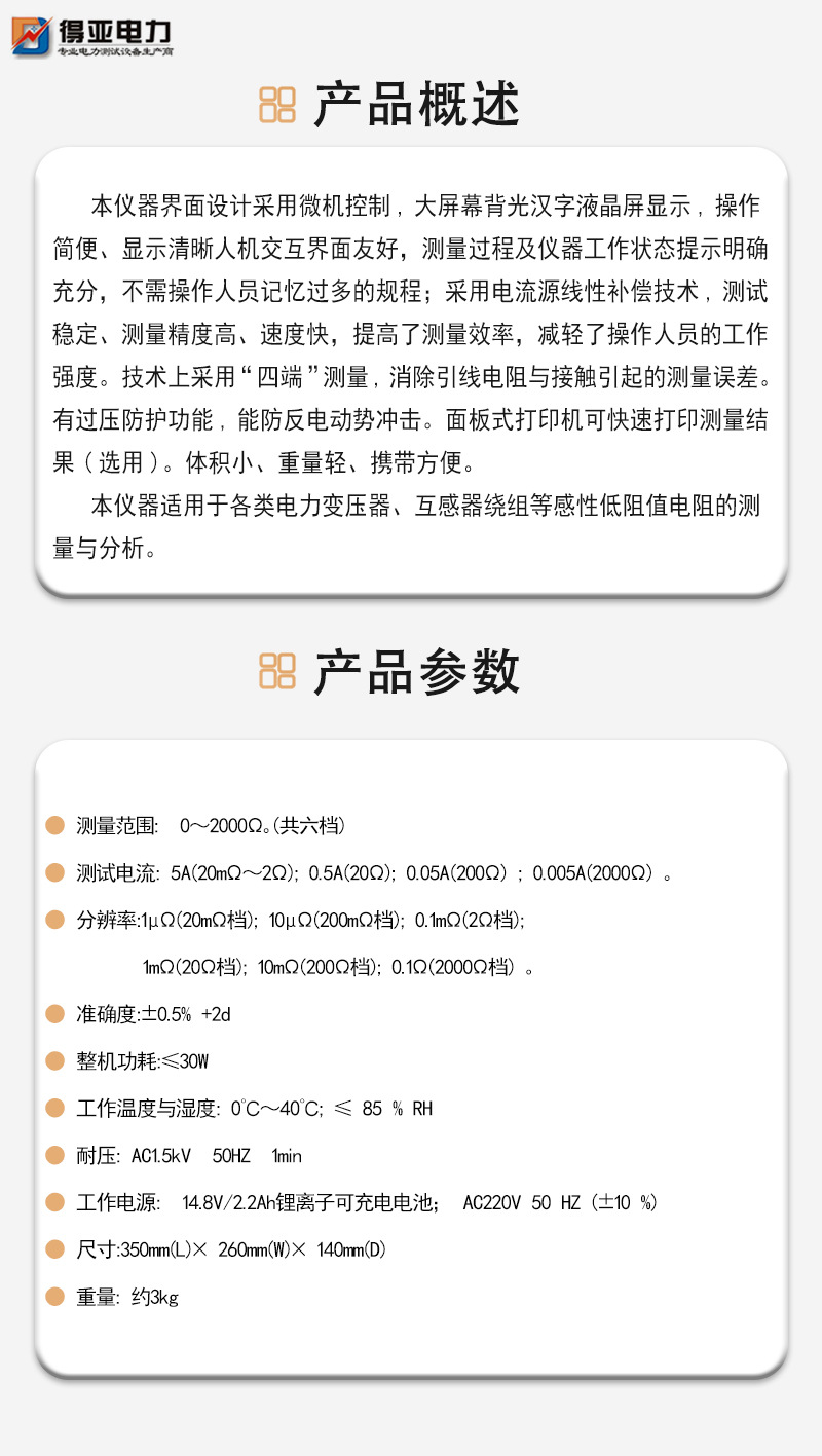 得亞電力直流電阻測試儀DYZC-5A