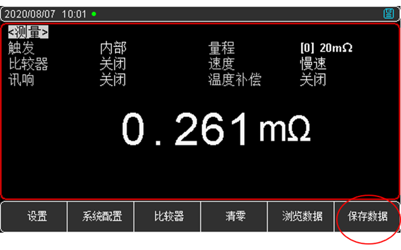 支持將測試數(shù)據(jù)手動保存于儀器內(nèi)部(存儲500組)。