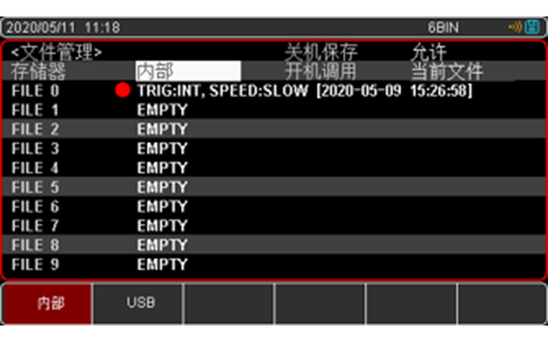 文件管理允許用戶保存設(shè)置到10個文件中,便于開機或更換規(guī)格時讀取。
