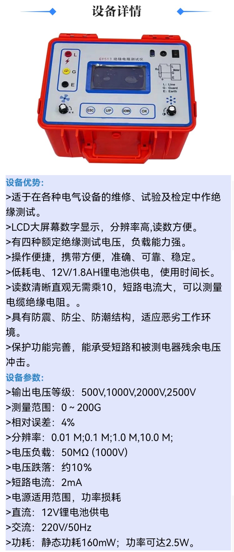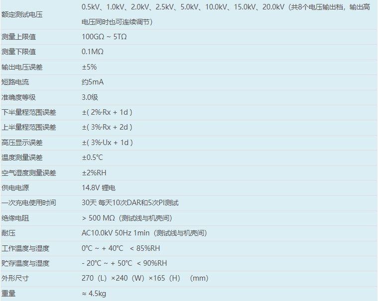 GM-10KV絕緣電阻測試儀 核心參數(shù)