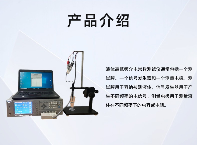 液體高低頻介電常數(shù)測試儀通常包括一個(gè)測試腔、一個(gè)信號發(fā)生器和一個(gè)測量電極。測試腔用于容納被測液體,信號發(fā)生器用于產(chǎn)生不同頻率的電信號,測量電極用于測量液體在不同頻率下的電容或電阻。